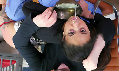Black haired plumper with big milk globes, Briana Dark-hued likes to get fucked hard, at work