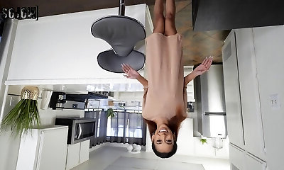 Petite ebony Kalani Luana wants aged step-father to fuck her in the kitchen
