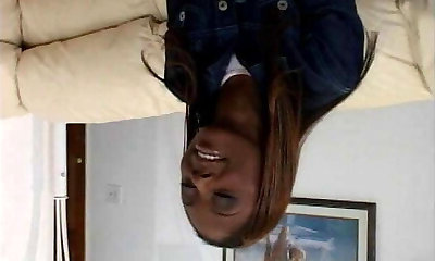 Stud bangs black stunner and creams her face on the couch