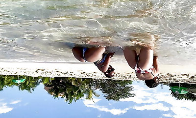 Phat ass ebony and curvaceous Latina munch around