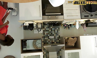 Busty Ample Booty Ebony MILF Big White Dick Kitchen Fuck Jizz Flow
