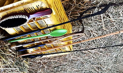 A black whore stretches her juicy pussy with this monstrous rubber dildo.