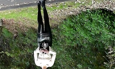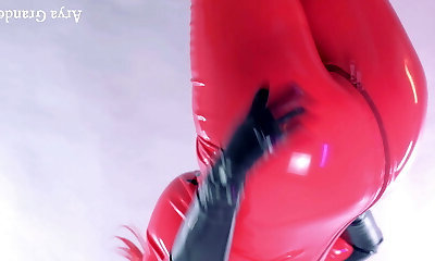 Red + Black Latex Catsuit Girl And High Heel Torture - Rubber Whore Heeljob