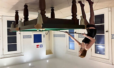 Sizzling gymnast with braids Lola Kauchuk dressed in latex