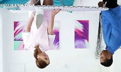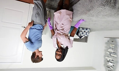 Quickie fucking between a white man and fantastic ebony maid Sommer Isabella