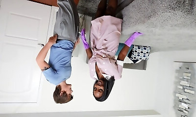 Seductive slim maid Bambi Black is prepared for quite hard doggy banging