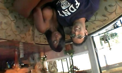 Two kush babes are here to be bonked with a good-sized dark-hued cock