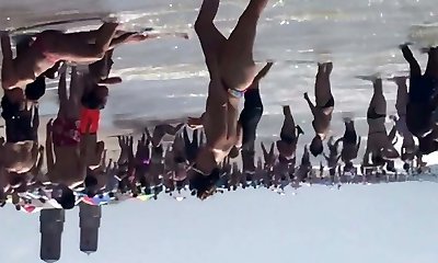 Twerking nude in public beach