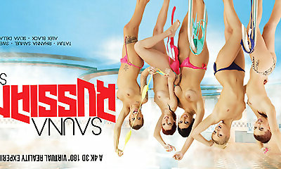 Alex Dark-hued & Kattie Gold & Rihanna Samuel & Silvia Dellai & Sweet Cat in Sauna Russian Style part 2 - VRBangers