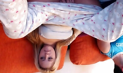Having fun time with my landlord stepdaughter on the couch